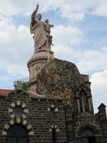 The basilica has two crenellated towers inspired by the feudal castle it replaced on the rock. It was built between 1913 and 1918 by Abbot Fontanille. The shrine has been open to Catholic worship since March 19, 1880, when the first mass was celebrated. In 1937, it became a parish.